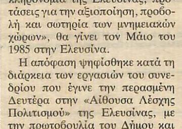 Article "International Conference to save the Elefsina"