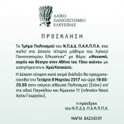 14o μάθημα του Λαϊκου Πανεπιστημίου Ελευσίνας με θέμα: " Μουσική, χορός και θέατρο στην Αθήνα του 19ου αιώνα" με εισηγήτρια την κ. Ηρώ Κατσιώτη