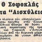 Πιθανά λόγια συγγραφέα: "Με την 'Αντιόνη΄του Σοφοκλή από το Εθνικό Θέατρο συνεχίζονται την ερχόμενη…"