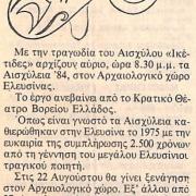 Πρόσκληση & πρόγραμμα εκδηλώσεων για τα Αισχύλεια 1984