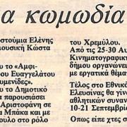 Πιθανά λόγια συγγραφέα: "Οι παραστάσεις δύο τραγωδιών και μίας Αττικής κωμωδίας είναι οι κεντρικές εκδηλώσεις στα 'Αισχύλεια 86' που αρχίζουν…"