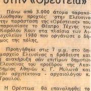Άρθρο "Η 'Ορέστεια' στα 'Αισχύλεια' της Ελευσίνας"