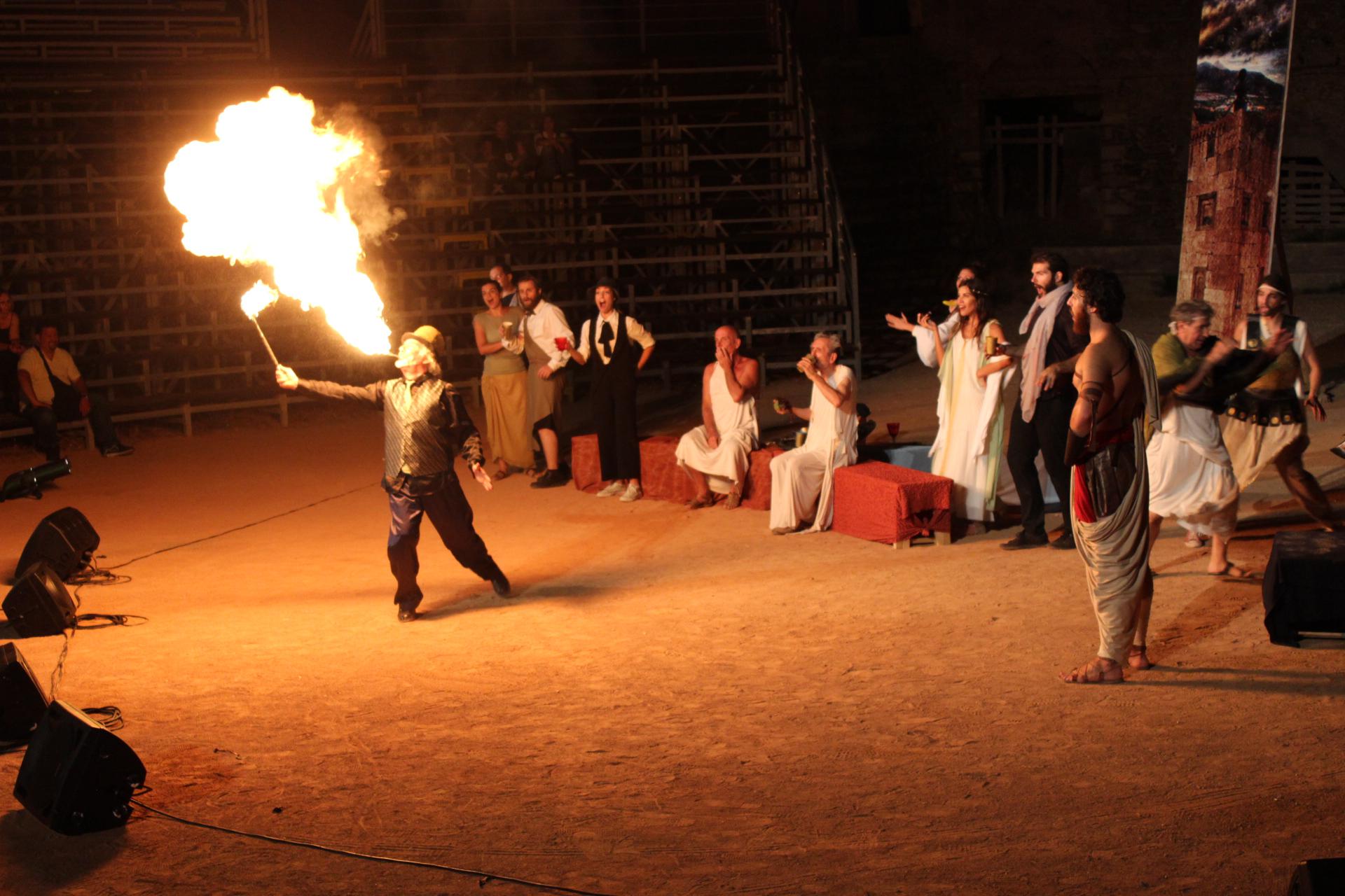 «Η ασπίς και το συμπόσιο», η μεγάλη υπερπαραγωγή της εταιρείας «Ανθός», έχοντας ήδη διανύσει ένα μεγάλο κύκλο παραστάσεων σε ολόκληρη την Ελλάδα, θα παρουσιαστεί τη Δευτέρα 29 Αυγούστου στο ανοικτό θέατρο του Παλαιού Ελαιουργείου Ελευσίνας, στο πλαίσιο του Φεστιβάλ «Αισχύλεια 2016» του Δήμου Ελευσίνας.