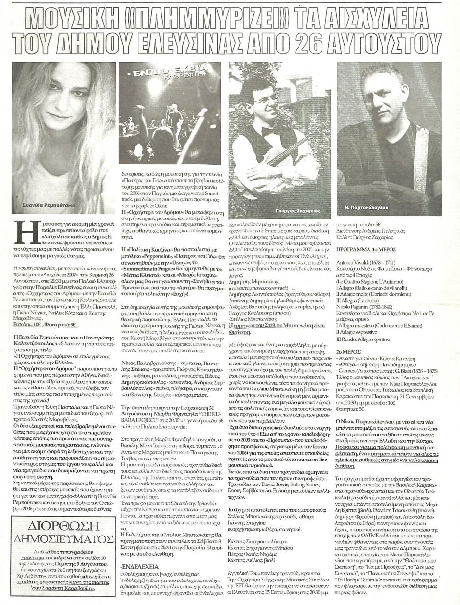 Πιθανά λόγια συγγραφέα: "Η μουσική για ακόμη μία χρονιά παίζει πρωτεύοντα ρόλο στα 'Αισχύλεια' καθώς ο Δήμος Ελευσίνας φρόντισε να 'ντύσει' τις νύχτες μας με πολλές νότες…"