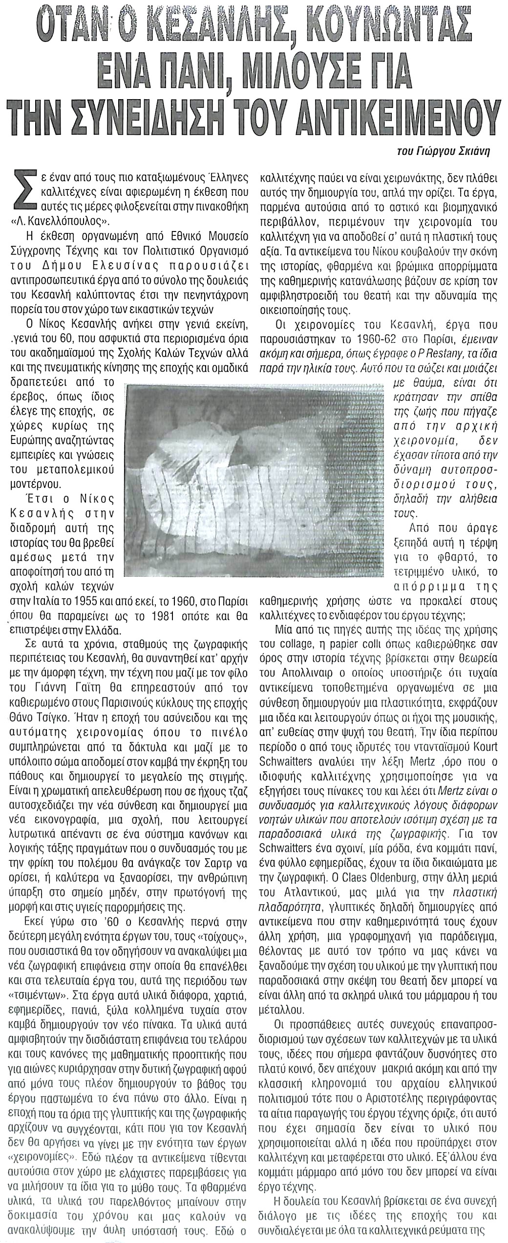 Άρθρο με τίτλο "Όταν ο Κεσσανλής, κουνώντας ένα πανί, μιλούσε για την συνείδηση του αντικειμένου"