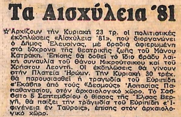 Άρθρο "Τα 'Αισχύλεια '81'"