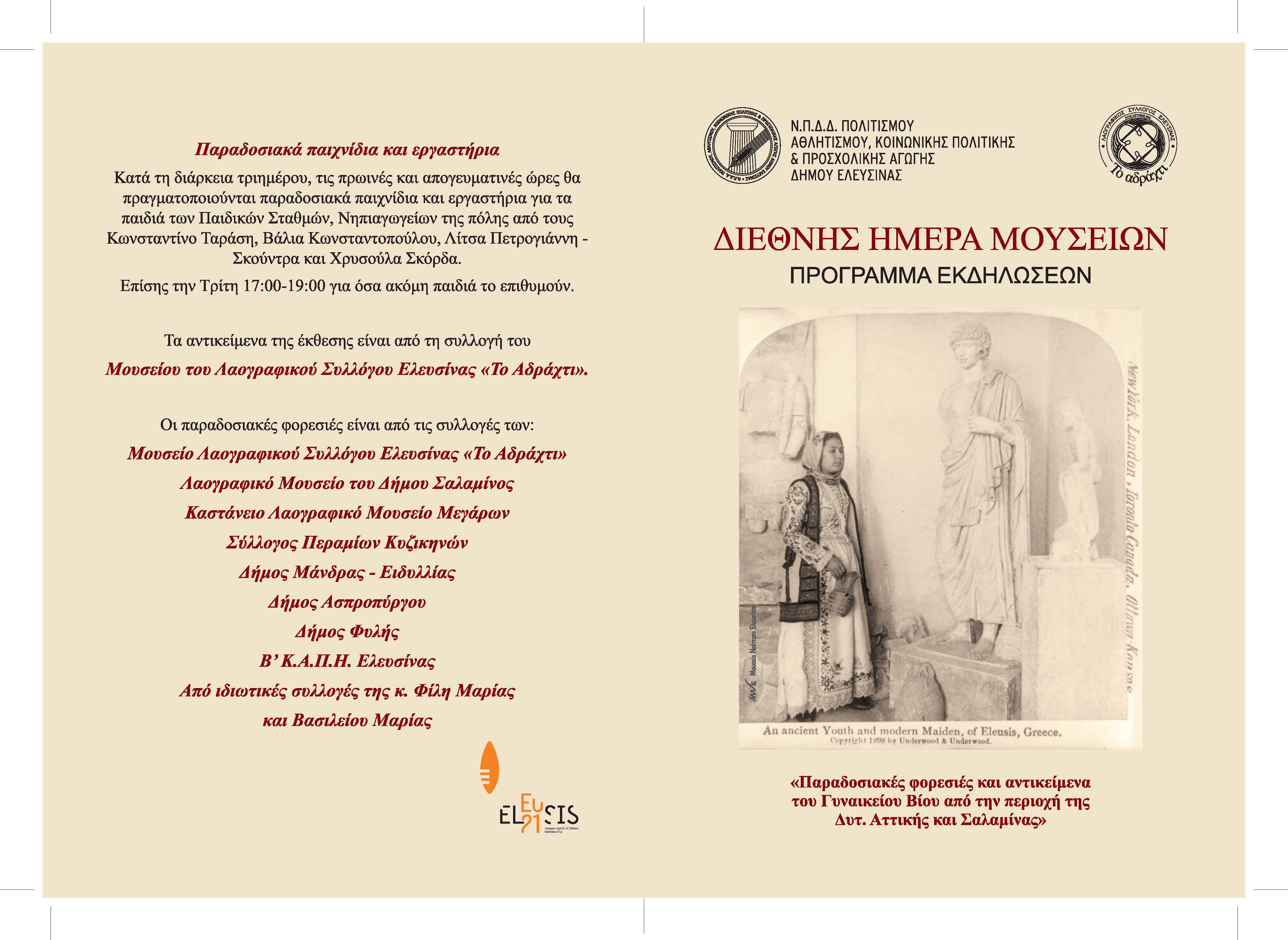 Οι φορεσιές και τα αντικείμεν απαραχωρήθηκαν από "Το αδράχτι" , το ΚΑΠΗ Ελευσίνας, Δήμους και Μουσεία της Δυτικής Αττικής και της Σαλαμίνας