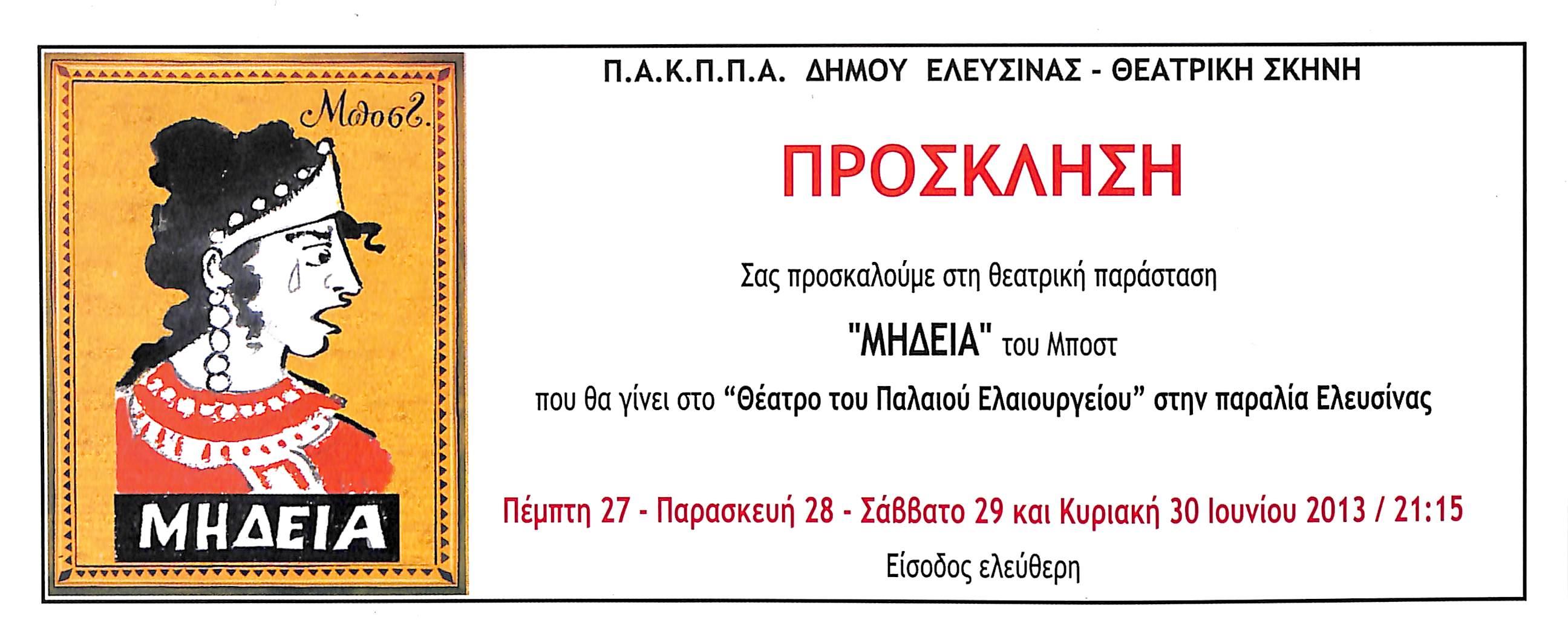 Θεατρική Παράσταση "Μήδεια" (του Μποστ) από τη Θεατρική Σκηνή Ελευσίνας