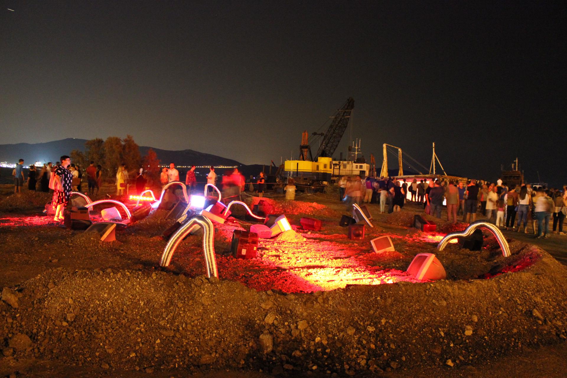 Για πρώτη φορά στην Ελλάδα θα πραγματοποιηθούν προβολές video installation art πάνω σε αγκυροβολημένα, αποσυρμένα πλοία που θα μετατρέψουν τον κόλπο της Ελευσίνας σε Θάλασσα πολιτισμού. Τα video installation θα δημιουργηθούν από τους video & 3d artists: Σπύρο Κουδουνά, Αγγελίνα Βοσκοπούλου, Samuele Livornese [Ιταλία], David Hawkins [Αγγλία], Αλίκη Αρναούτη Οι θεατές θα συναντήσουν το video installation μέσα από λέμβους σε μια νυχτερινή διαδρομή στη θάλασσα σαν το σύγχρονο Οδυσσέα.