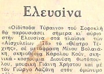 Άρθρο "'Οιδίποδας' του κουν στην Ελευσίνα"