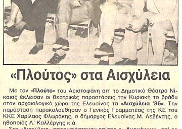 Άρθρο "'Πλούτος' στα Αισχύλεια"
