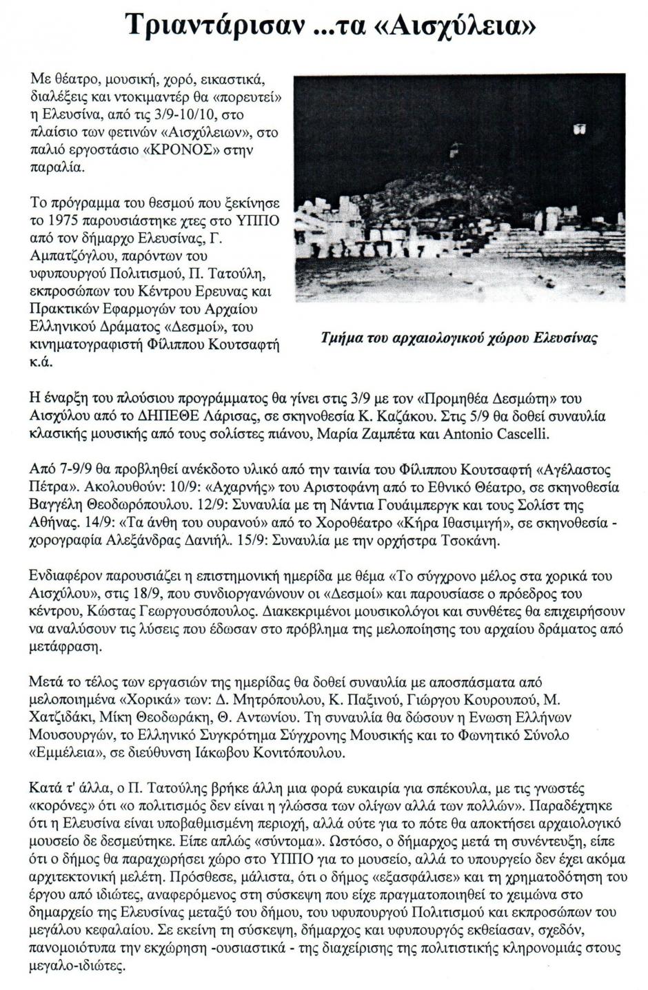 Πιθανά λόγια συγγραφέα: Με θέατρο, μουσική, χορό, εικαστικά, διαλέξεις και ντοκιμαντέρ θα "πορευτεί" η Ελευσίνα…