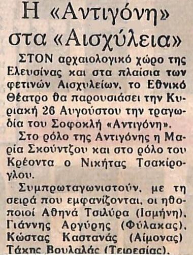 Άρθρο "Η 'Αντιγόνη' στα 'Αισχύλεια'"