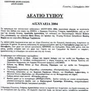 …Το πρόγραμμα των πολιτιστικών εκδηλώσεων ΑΙΣΧΥΛΕΙΑ 2004, παρουσίασε σήμερα σε συνέντευξη τύπου που δόθηκε στο κτίριο της ΕΣΗΕΑ…