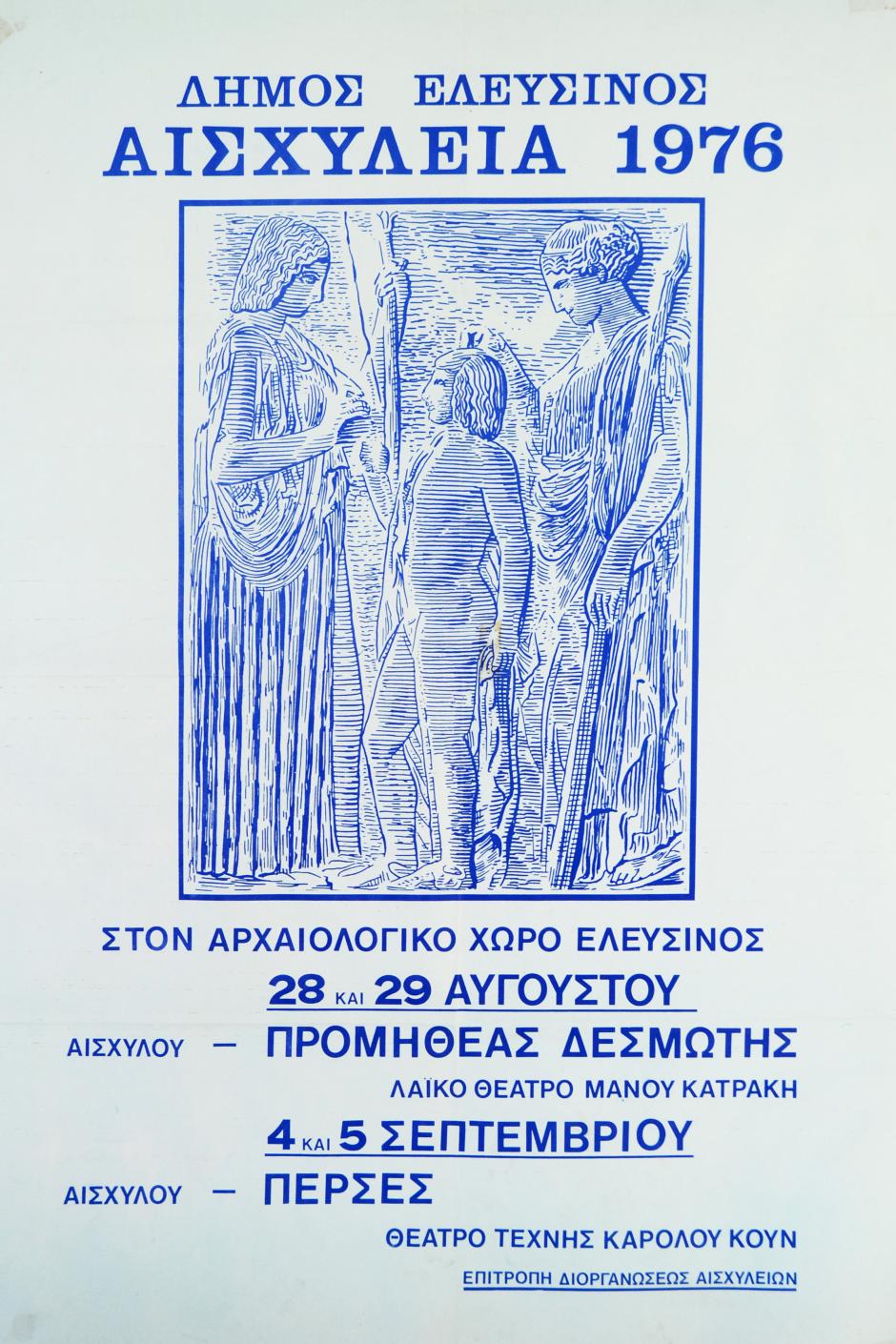 Αφίσα - Πρόγραμμα εκδηλώσεων "Αισχύλεια 1976" από το Θέατρο Τέχνης "Κάρολος Κουν"
