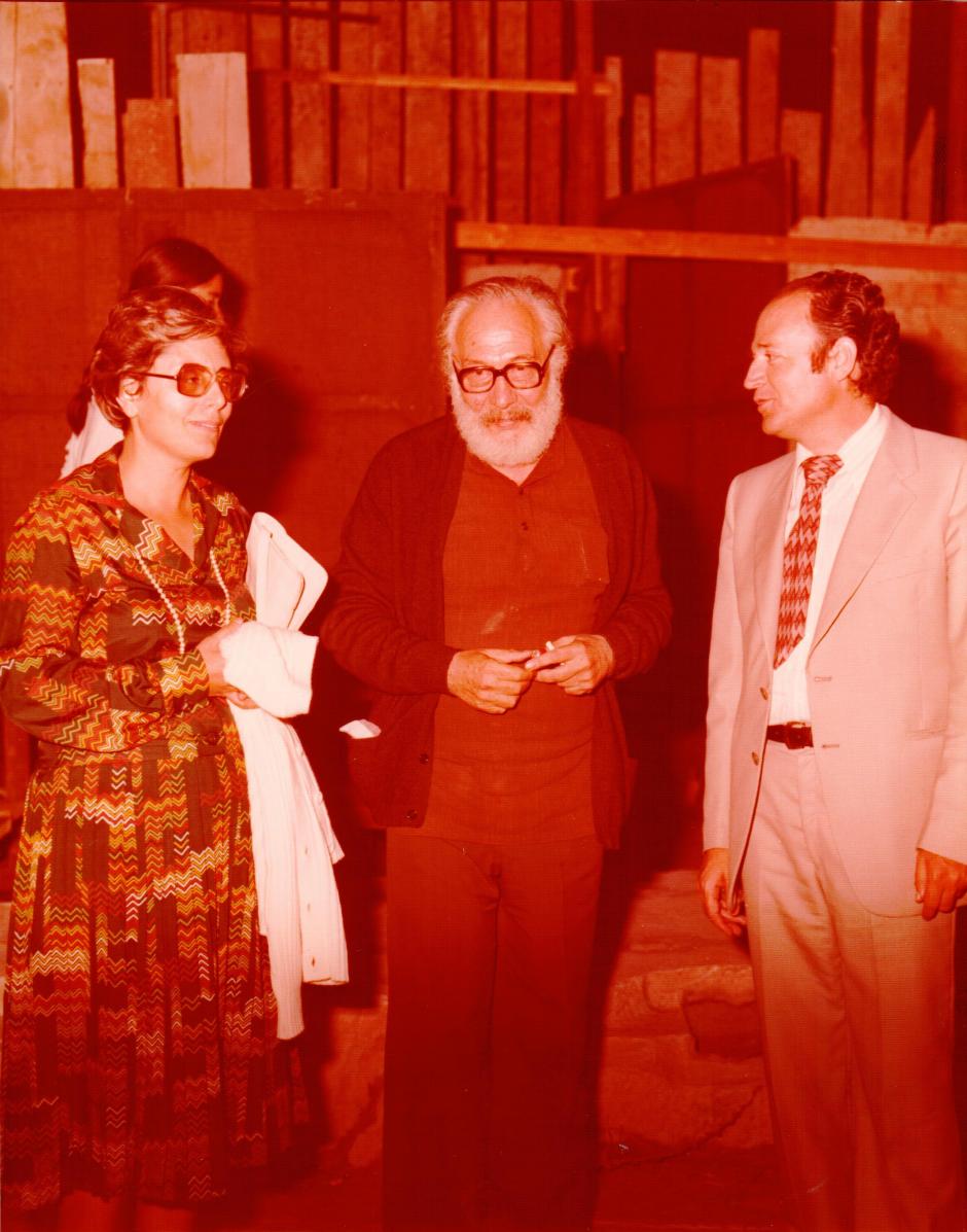 Θεατρική Παράσταση "Οιδίπους Τύραννος" (του Σοφοκλή) από το Θέατρο Τέχνης "Κάρολος Κουν". Απεικονίζεται ο Γιώργος Λαζάνης ως "Οιδίπους" και η Ρένη Πιττακή ως "Ιοκάστη"